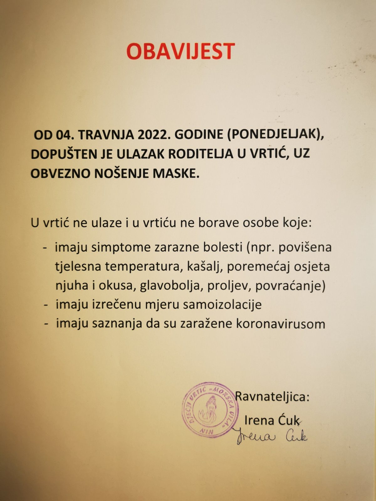 Poštovani roditelji,